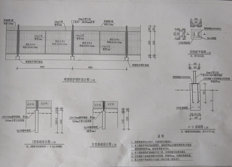 3、本工程水源地喷塑防护围栏基础桩共有三种,具体根据实际情况确定。