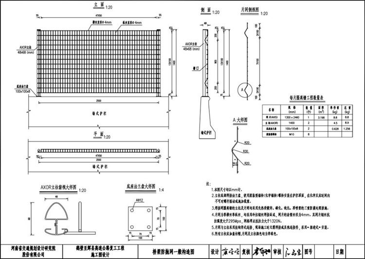 二、桥梁防抛网一般参数