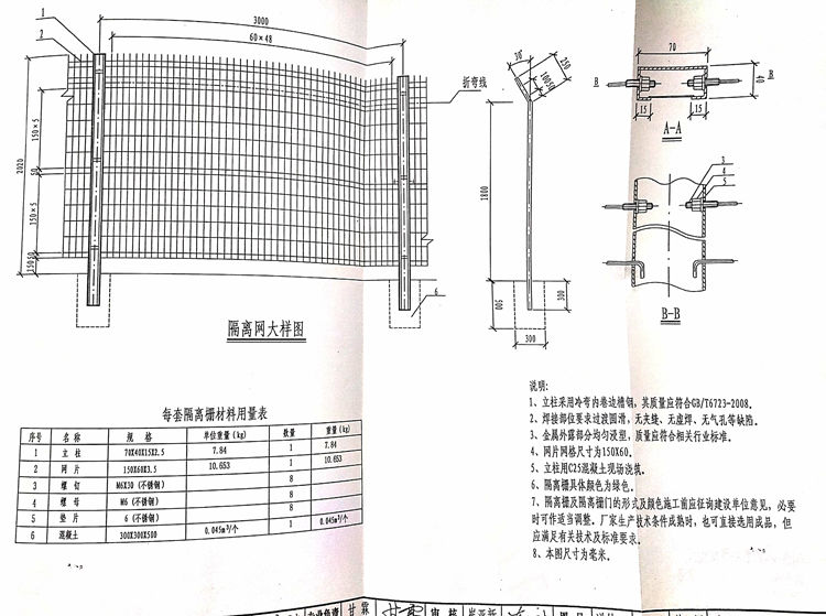 二、槽钢立柱隔离网参数要求: