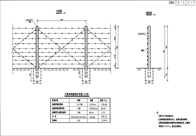 三、高速公路隔离栅结构型式