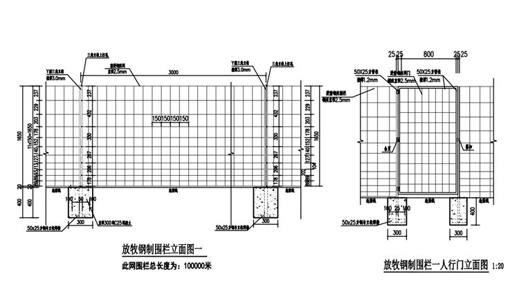 牛栏网款式放牧钢制围栏一般介绍:1、立柱,3mm厚度Y型三角立柱,立柱打孔;2、网丝,2.5mm牛栏网编织网款式;3、高度,1670mm;4、跨距,3000mm;5、防腐工艺,镀锌防腐。6、由于现场地形复杂,高低起伏较多,尺寸不规则,需要现场解决。