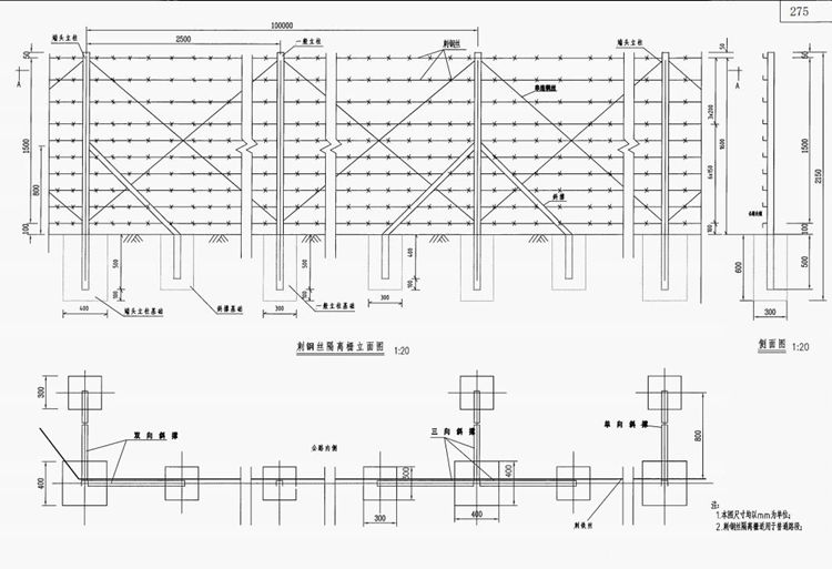 2、本图适用于刺钢丝隔离栅的一般布设。