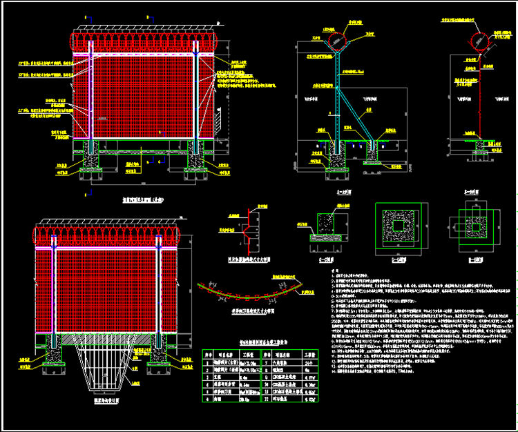 10、图中立柱顶部应加盖柱帽,立柱与钢筋网、立柱与斜撑及立柱与延伸臂的连接采用防盗形式并经防腐处理。