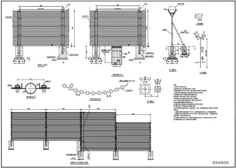 13.钢筋网围界的详细定位详见“附属设施平面布置图”。