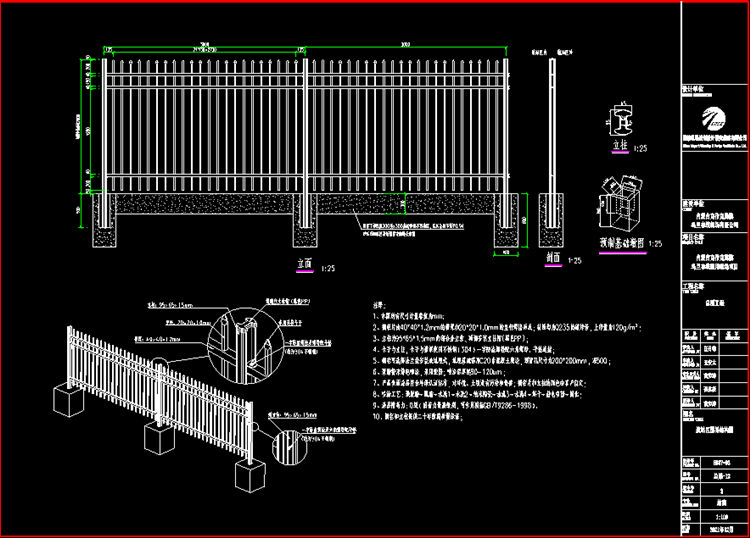 1、本图栅栏围界所有尺寸计量单位为mm。