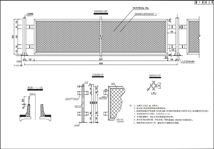 1、本图高速公路防眩网尺寸均以mm为单位。