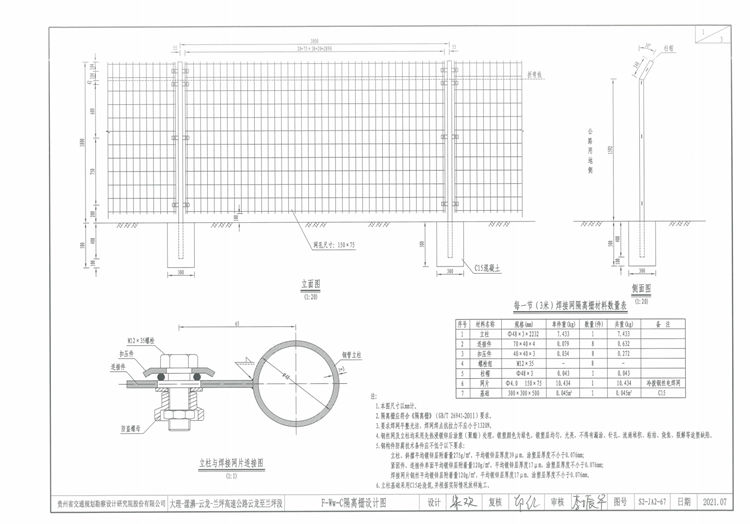 1.本图F-Ww-C隔离栅尺寸以mm计。