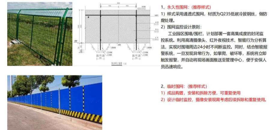 1)样式采用通透式围网,材质为Q235低碳冷拔钢丝,做防腐处理。