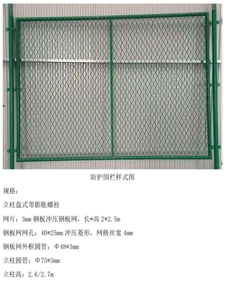1.本批防护围栏供应商需负责安装工作,供应商需自带电动工机具及小型设备,所带设备需经项目部验收合格后方可使用(验收资料包含但不限于合格证(或者3C认证)、质量证明文件),报价需含安装费用,采用地脚螺栓安装方式,报价单格式及编号不得改变, 必须严格按照询价表中的规格型号、材质、技术标准报价,如有需增加内容或异议请提供书面说明;
