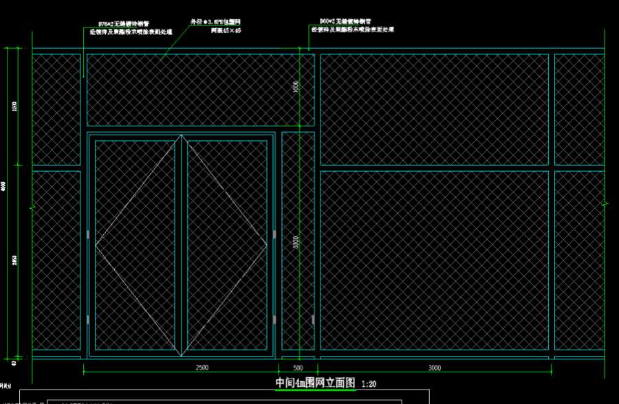 (1)围网使用18*3.8mm扁铝压网固定在立柱和横杆上。