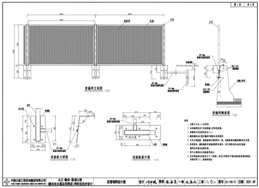 3.防抛网立柱设置间距为2m。