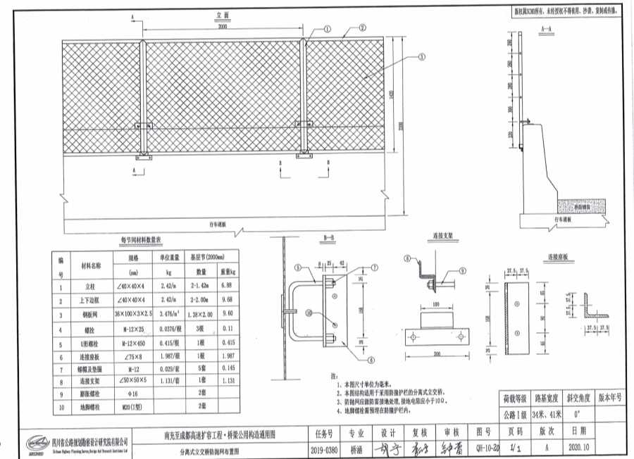 2、本图结构适用于采用防撞护栏的分离式立交桥。